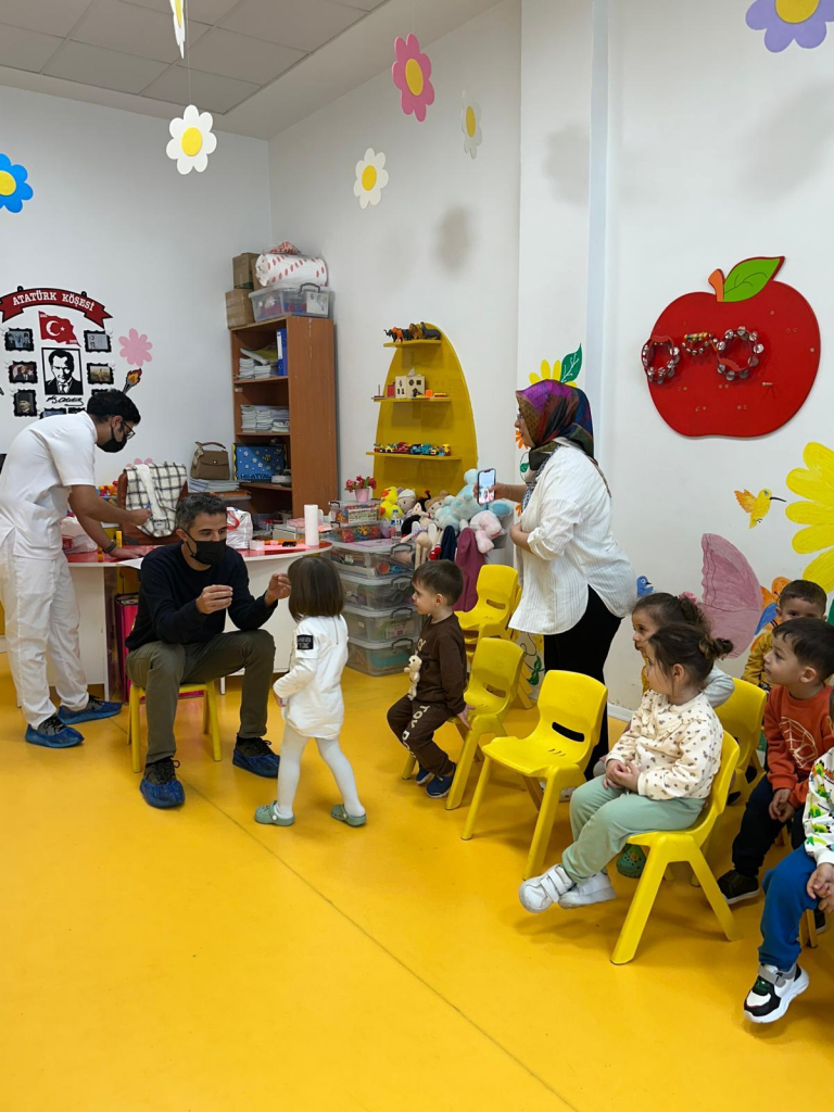 Üniversitemiz Gündüz Bakımevi’nde, Toplum Ağız ve Diş Sağlığı Haftası kapsamında miniklerimize yönelik kapsamlı bir ağız ve diş sağlığı taraması gerçekleştirildi. Etkinlikte, alanında uzman diş hekimlerimiz tarafından çocukların ağız ve diş gelişimleri değerlendirilerek erken dönemde fark edilebilecek sorunlara yönelik bilgilendirmelerde bulunuldu.