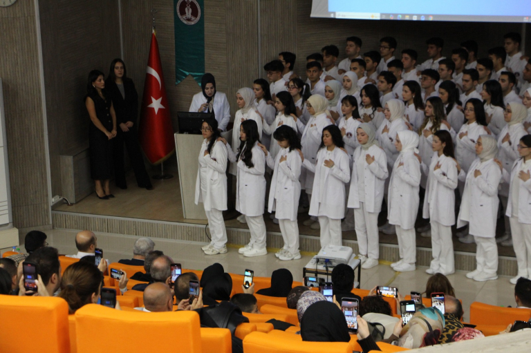 Fakültemiz 2025-2026 Eğitim-Öğretim Yılı Beyaz Önlük Giyme Töreni 20.11.2025 tarihinde düzenlenmiştir. Törende, Rektör Yardımcımız Prof. Dr. İrfan KAYGUSUZ, Dekanımız Prof. Dr. Tuba TALO YILDIRIM, Dekan yardımcımız Dr. Öğr Üyesi M. Sinan OCAK ve Başhekim yardımcımız Doç. Dr. Mehmet ESKİBAĞLAR konuşmalarında, öğrenci ve ailelerini tebrik ederek genç diş hekimi adaylarına başarı dileklerinde bulundular.